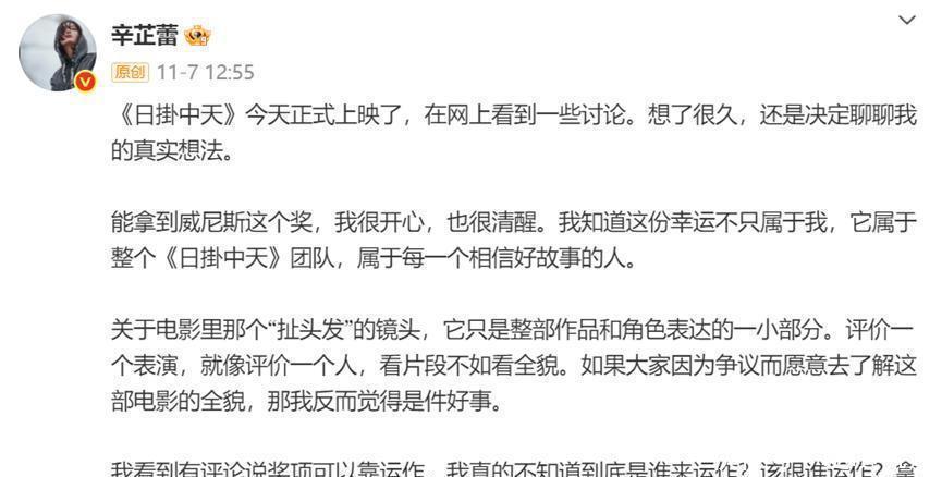 面对她这一番坦率尖锐的说话,11月7日,辛女士也在自己的社交平台上发表了回复。