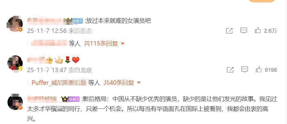 有的网友还留言说放过本来对女演员来说挺不容易的,这话听起来好像是在指郝女士,感觉有点这意思。